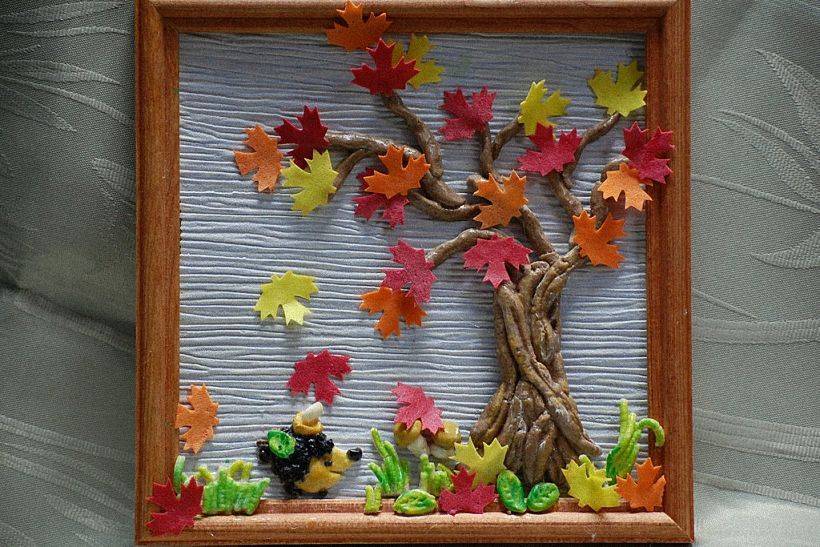 Гипсовое панно можно отделать декоративной минеральной ролл-штукатуркой, раскрасить многослойными составами, например, для имитации опавших листьев используются 3-4 оттенка в желто-коричневой гамме, при этом начинать проще с самого светлого тона:
