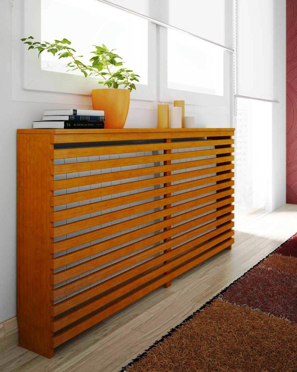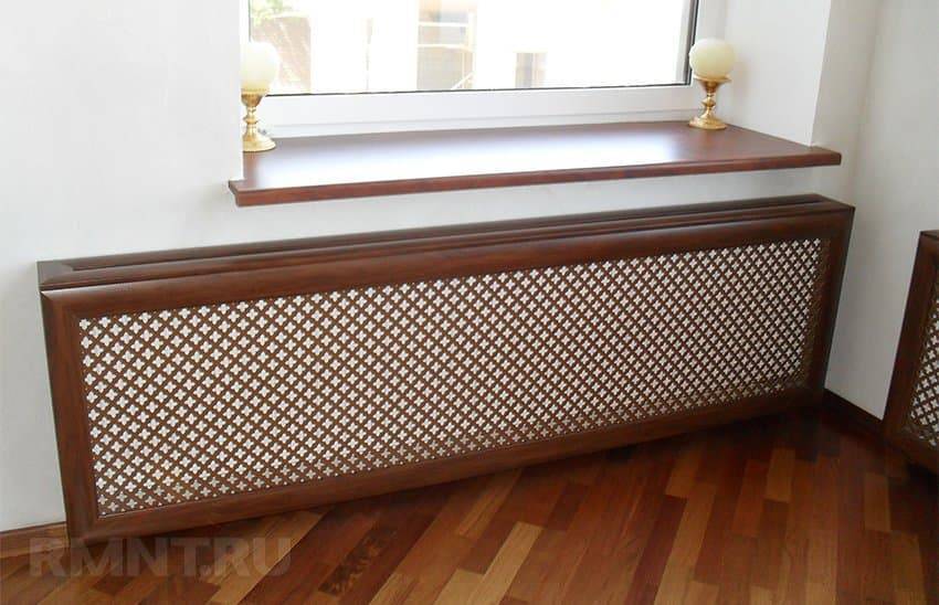 Деревянный приставной короб для ограждения батареи — отличный вариант, который обеспечивает доступ к радиатору в случае надобности
