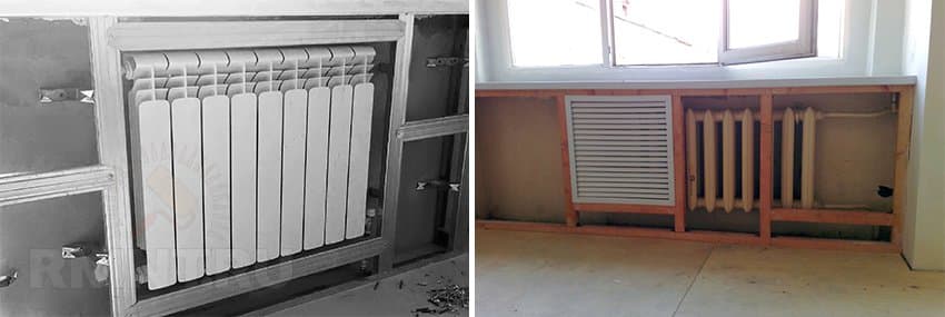 - навесные экраны, выполненные с крышкой, применяют в том случае, если чугунные радиаторы выступают из-под подоконника;