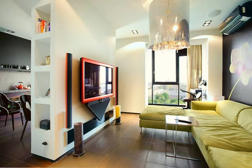 Для просмотра видео и телепрограмм лучше всего подойдет плазменный телевизор на стене. Самое главное – не забивать пространство предметами.