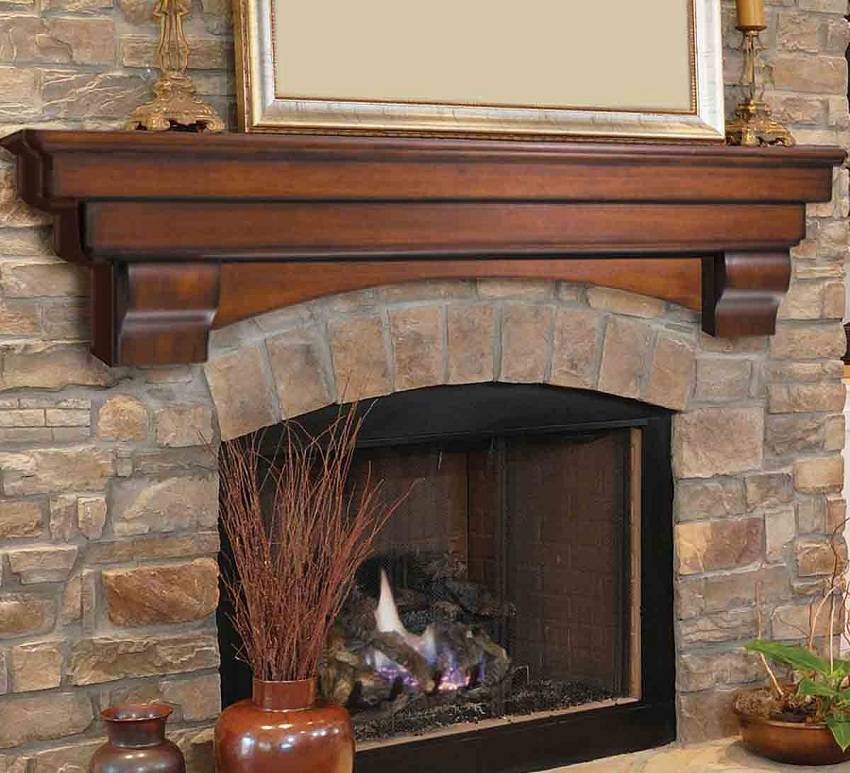 Каменную печь выгодно подчеркнет полка из массивного дерева