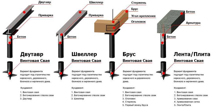 Материал для изготовления опор применяют в зависимости от вида грунта