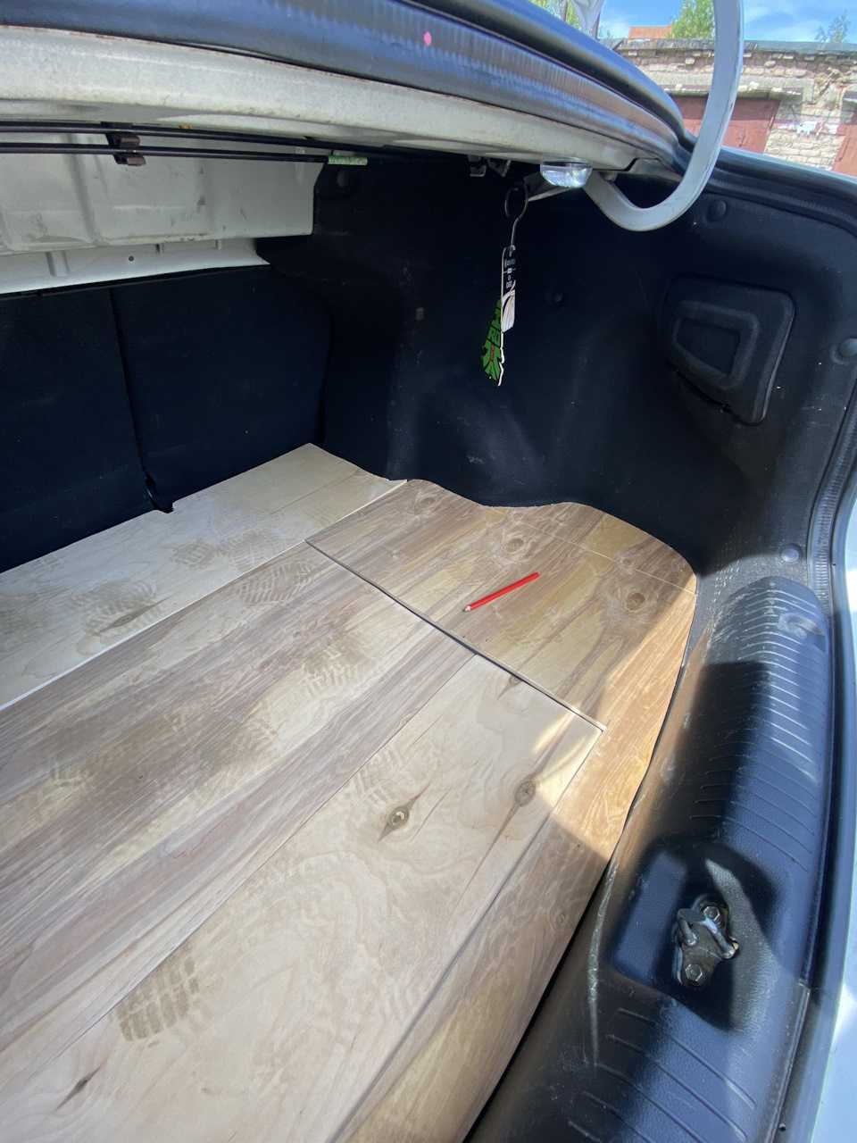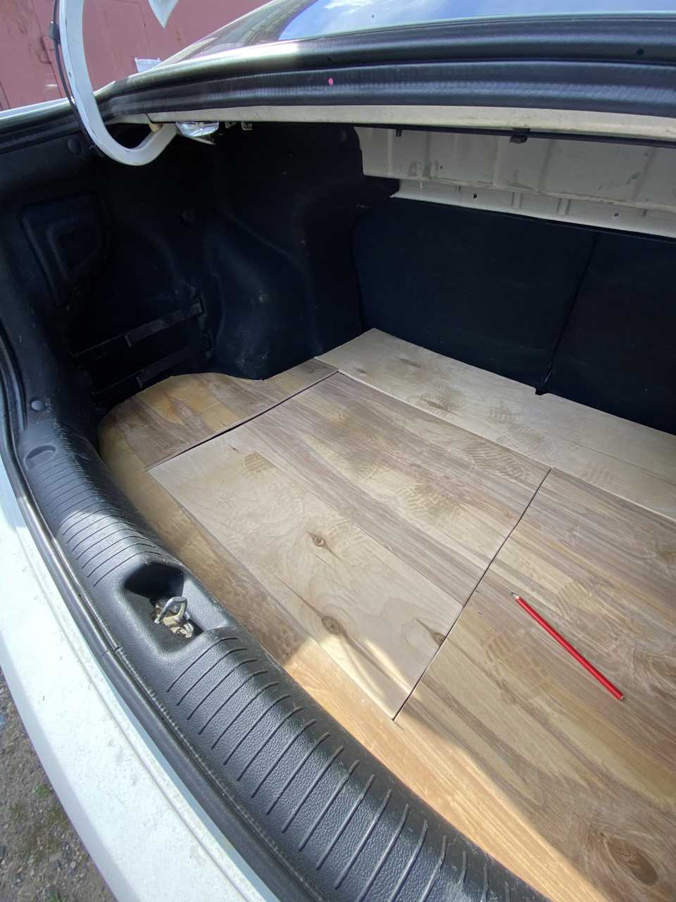 Получаем результат.Далее нарезаем «дверку» под мелкий отсек и запасное колесоЕстественно, измеряем, ходим туда-сюда ( багажник / гараж), чтобы лишнее не отрезать