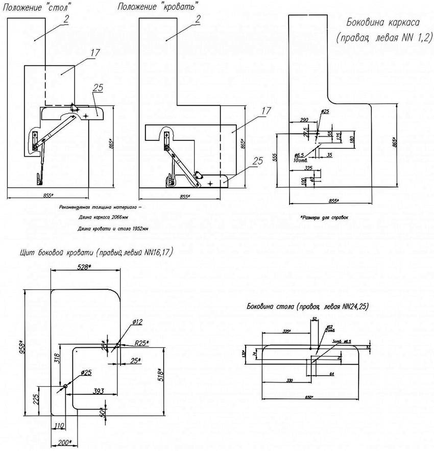 Откидная кровать-трансформер состоит из трех основных элементов: ложа, короба и подъемного механизма. Габариты кровати определяются исходя из возраста. Однако необходимо предусмотреть большой запас с учетом взросления ребенка. В качестве материала для изготовления кроватки своими руками можно использовать натуральную древесину, МДФ или ДСП. Последний вариант является самым дешевым, обеспечивая конструкции небольшой вес.