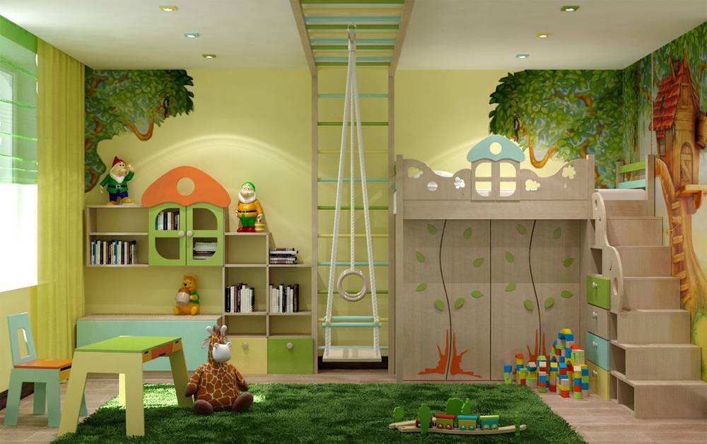 Например, спортивный уголок, кровать, в которой есть второй этаж для интересных занятий.