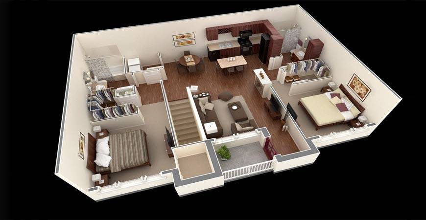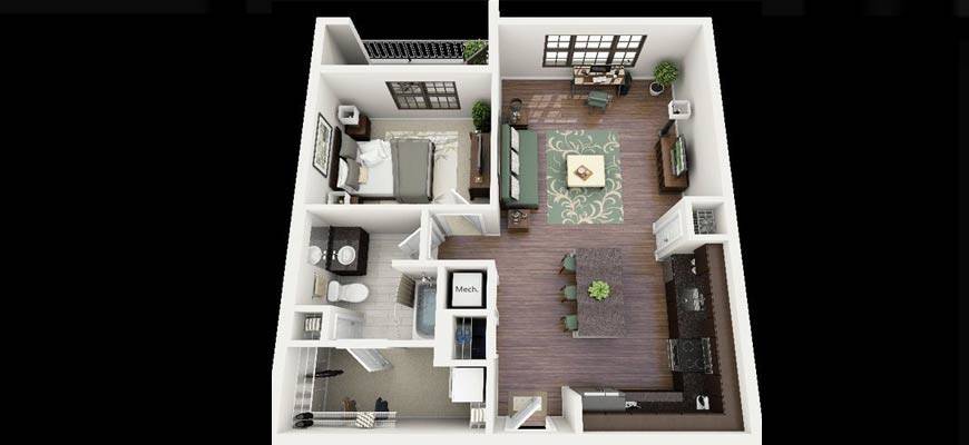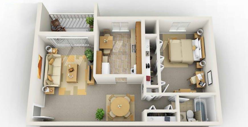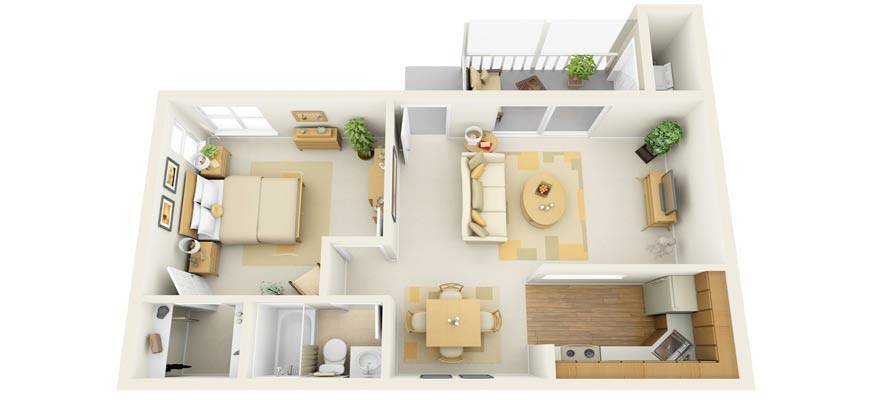 Вы можете разместить комнаты таким образом, что вам будет удобно жить в своей новой квартире. Зачастую, хозяева создают квартиру студию, где нет лишних перегородок.