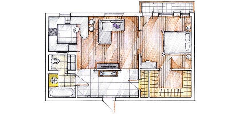 Мы же с вами будем стремиться к тому, чтобы использовать пространство жилой площади рационально и экономно. В стандартной квартире всегда найдётся сложный участок, который нужно правильно обыграть в будущем проекте. В этом сможет помочь перепланировка, для которой предварительно составляется план с учётом всех плюсов и минусов квартиры, а также предпочтений жильцов.