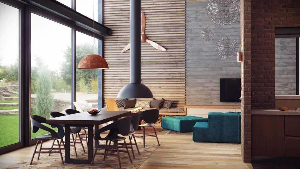 - Максимально открытое помещение, будь то дом, квартира, офис или кафе. Больше подходят для оформления дизайна лофт квартира-студия, двухэтажная квартира и загородный дом.