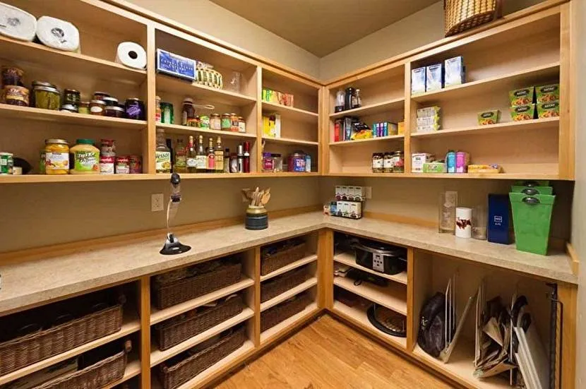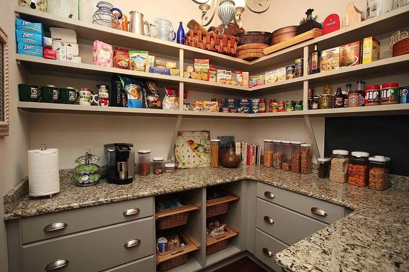 Наиболее частое назначение кладовок в небольших квартирах — это хранение кухонной утвари и продуктов. Кухни всегда перенасыщены огромным количеством вещей: посуда, банки, емкости, консервация, крупы, овощи и фрукты, мелкая бытовая техника.