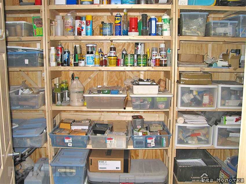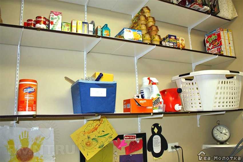 Под них определите способ крепления к стойкам, ширину полок, бортиков на них, объем межполочного пространства. Последнее может быть разной высоты, тут не до строгой эстетики, а до функциональности кладовки.