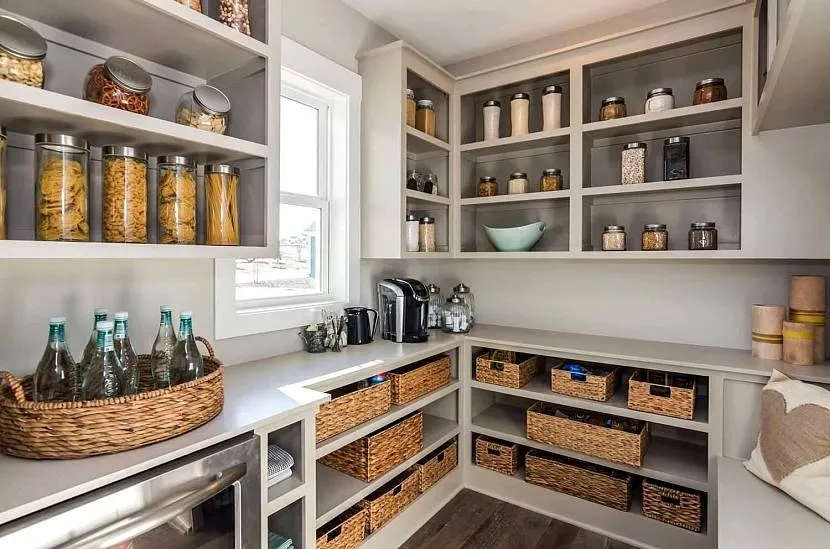 Кухонная кладовка может быть отдельным небольшим помещением, нишей, открытой конструкцией