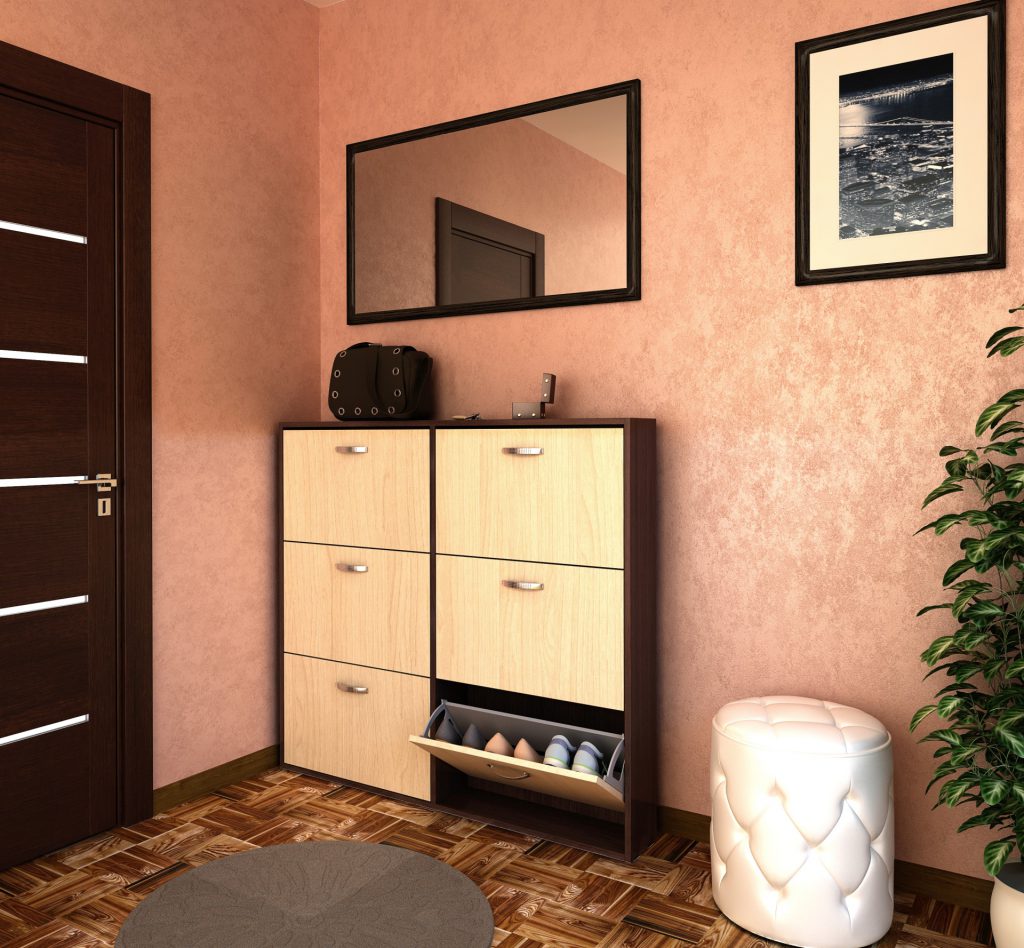 Если есть возможность, то помимо шкафа стоит установить обувницу или тумбу. Конструкция должна быть узкой и высокой. Лучше весь гарнитур сделать на заказ. Это позволит максимально эффективно использовать каждый метр коридора.