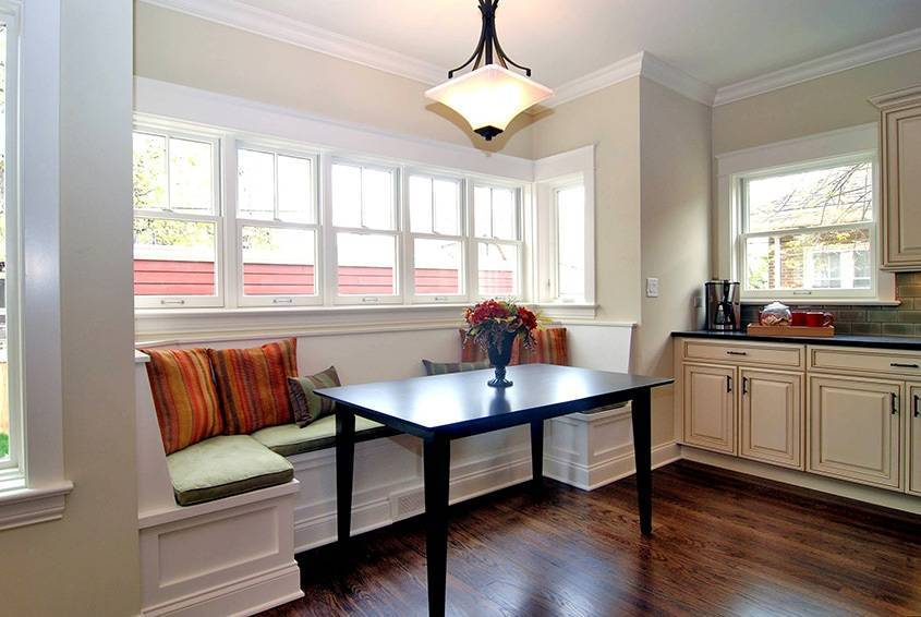 Поскольку большинство современных кухонь обычно драпируются нейтральными оттенками, а также большим количеством белого цвета, сиденье с окном может легко вписаться в эту схему с яркими сезонными цветами.