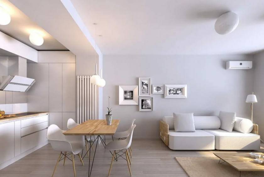 Поскольку может возникнуть ощущение загроможденности пространства маленькой квартиры, нужно позаботиться хотя бы о визуальном его расширении. С этой задачей справятся светлые отделочные материалы и мебель. Светные, это не только белые, но и бежевые, пастельные, кремовые и т.д.