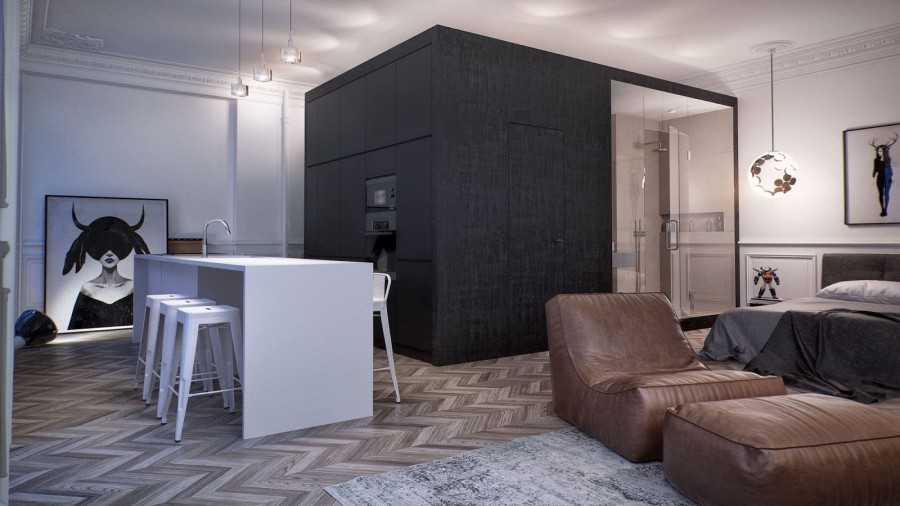 Необычный дизайн однокомнатной квартиры в современном стиле: модные фишки