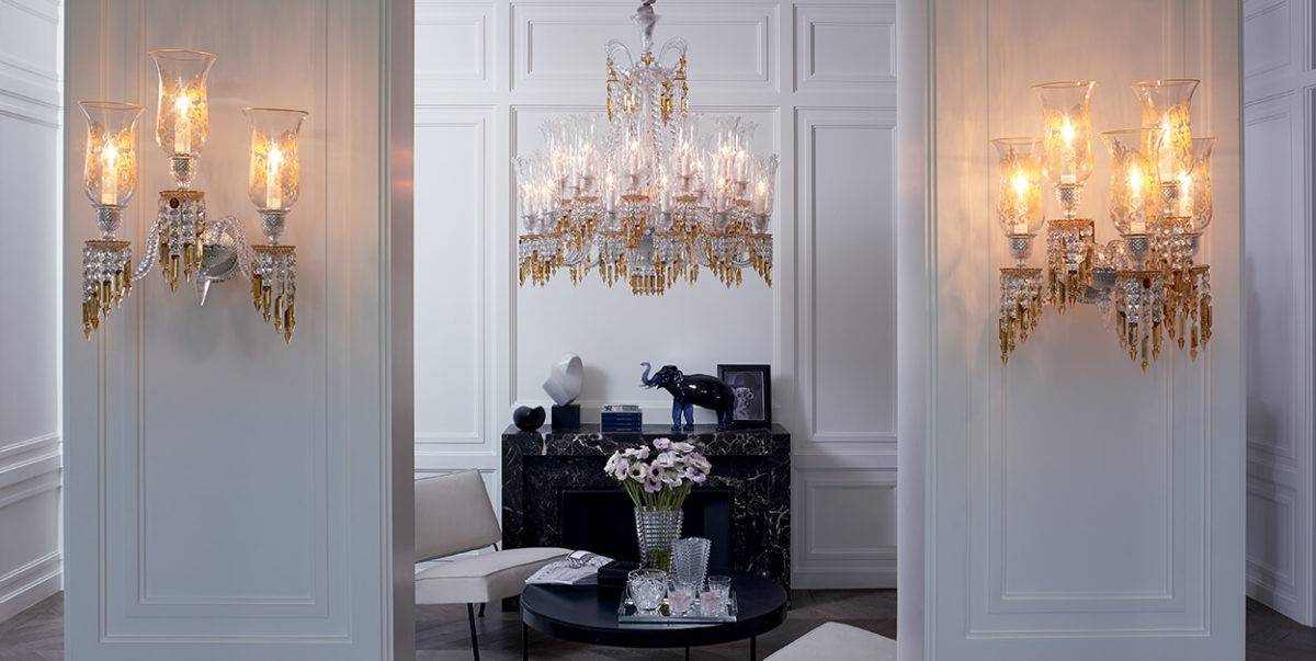 Современные художники, обустраивая дома в стиле классики, используют хрустальные бра и светильники по той причине, что прозрачное бесцветное стекло не требует привязки к палитре интерьера, при этом декорирование люстр подвесками – это очень по-английски (например, завод Baccarat).