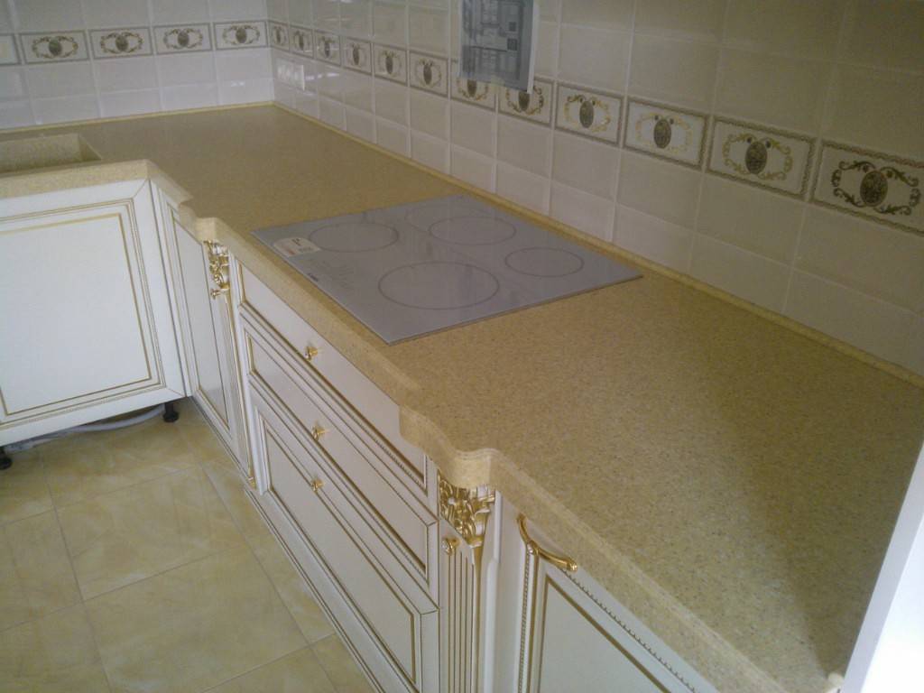 - Что касается столешницы, то лучше всего выбирать варианты из натурального камня. Они достаточно дорогие, однако отличаются долговечностью, надежностью и способностью справляться с механическими воздействиями, что имеет первостепенное значение для кухни.
