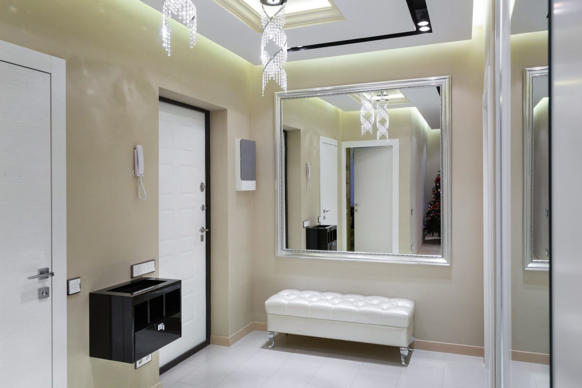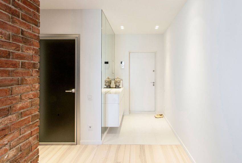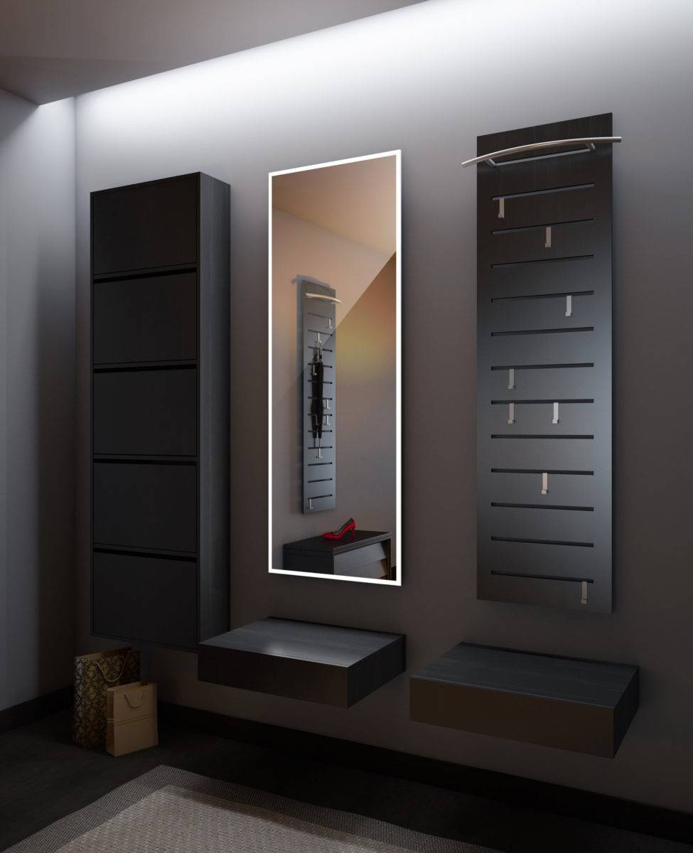 Но такое оформление подойдёт, если коридор не слишком узкий. Также можно установить зеркало со светодиодной подсветкой (в том числе и в виде ленты).