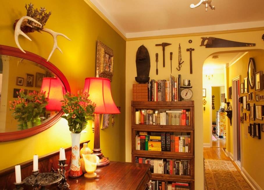 Выбор отделки, используемой мебели и декоративных элементов для расстановки акцентов и украшения помещения должен падать на материалы, способные выдержать постоянные изменения температуры и уровня влажности из-за близости входной двери.