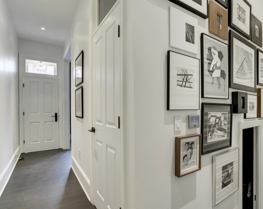 Хорошей идеей для оформления узкого коридора – сочетания оттенков с одинаковой температурой, с различной степенью насыщенности, а также композиции оттенков, смежных друг с другом на цветовом круге.