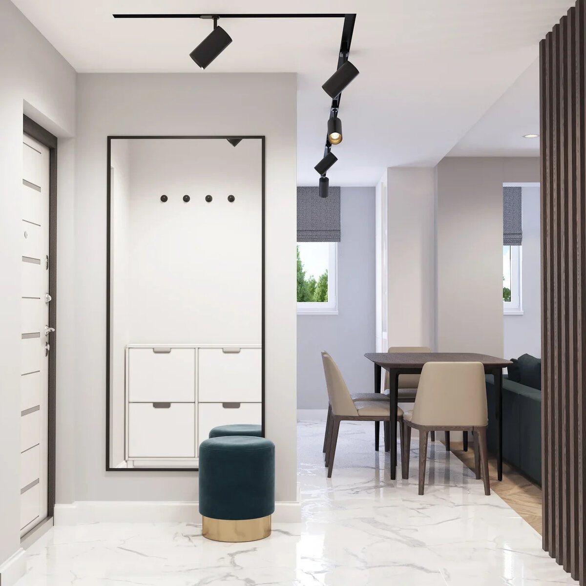 Есть несколько фишек, которые обманывают наше визуальное восприятие ширины и расстояния, заставляя узкую прихожую не выглядеть тесной.