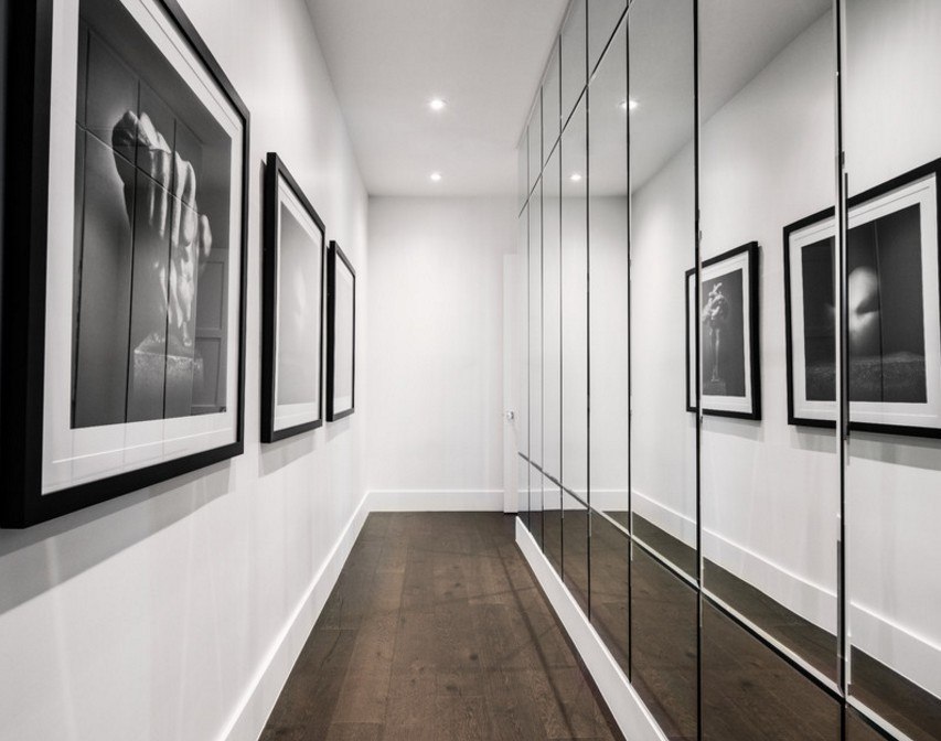 Зеркало или ещё лучше нарезка из нескольких маленьких продольных зеркал на одной стене — и вы вообще не сможете оценить ширину.