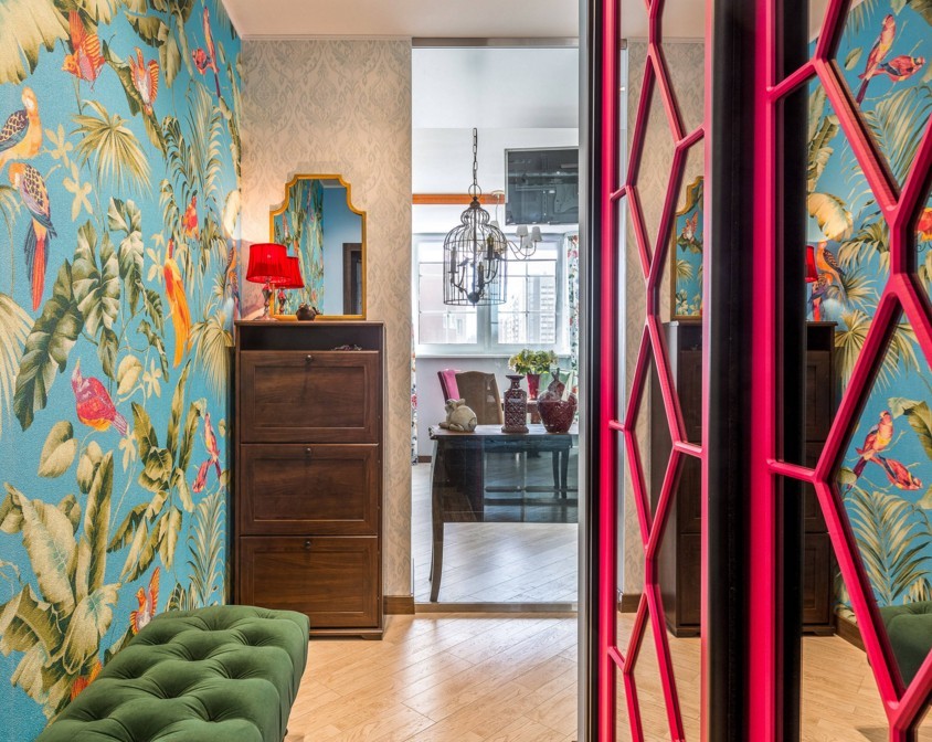 В маленьком коридоре обилие текстур и рисунков будет играть на визуальное уменьшение помещения. Возникнет ощущение случайно собранных в пространстве цветов и элементов.