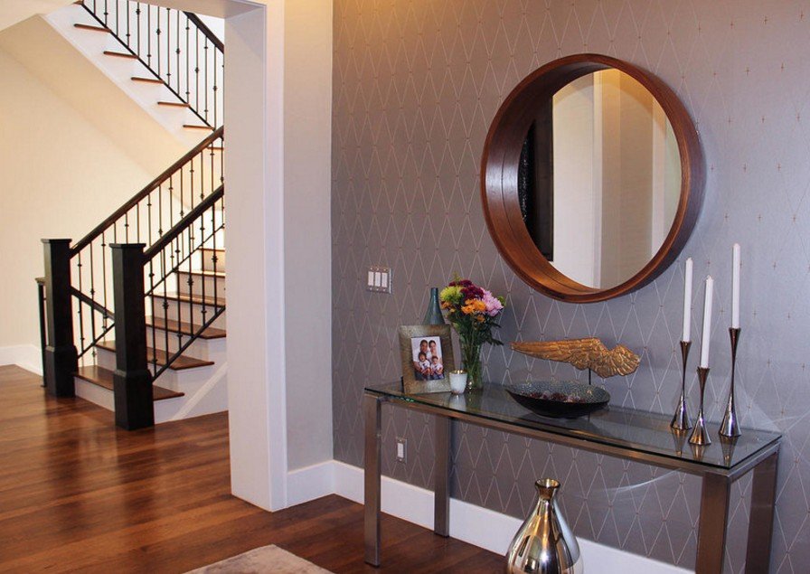 Отражающие поверхности зрительно расширяют пространство, поэтому использовать в дизайне маленькой прихожей зеркало будет весьма уместно. Оно должно быть размещено так, чтобы людям было удобно пользоваться им (особенно в плане высоты).