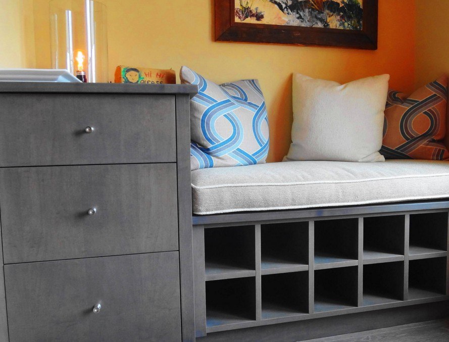 В прихожей также должно быть место, где можно надеть обувь сидя. Это может быть отдельный маленький пуф или невысокая обувница, рассчитанная в том числе и на такое использование.