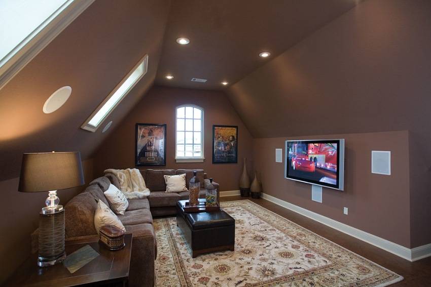 Выбор цвета для отделки чердака требует учитывать стилевое направление помещения, а также помнить о специфике мансарды: