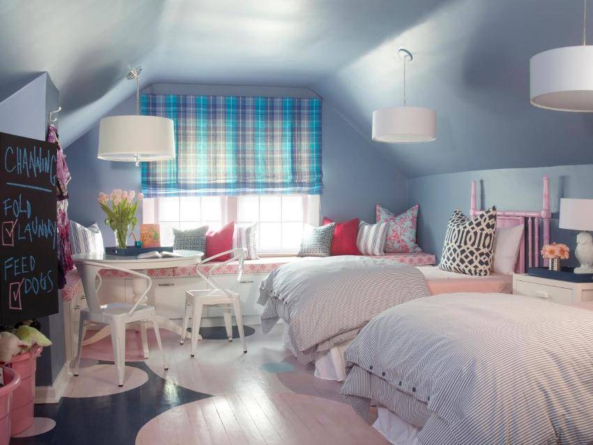 Важно! Если площадь позволяет, то на мансарде вполне возможно выполнить спальню для двух детей с применением зонирования.