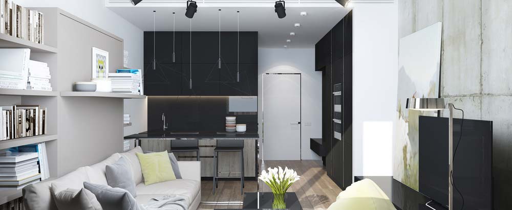 Однокомнатная квартира в черно-белой цветовой гамме