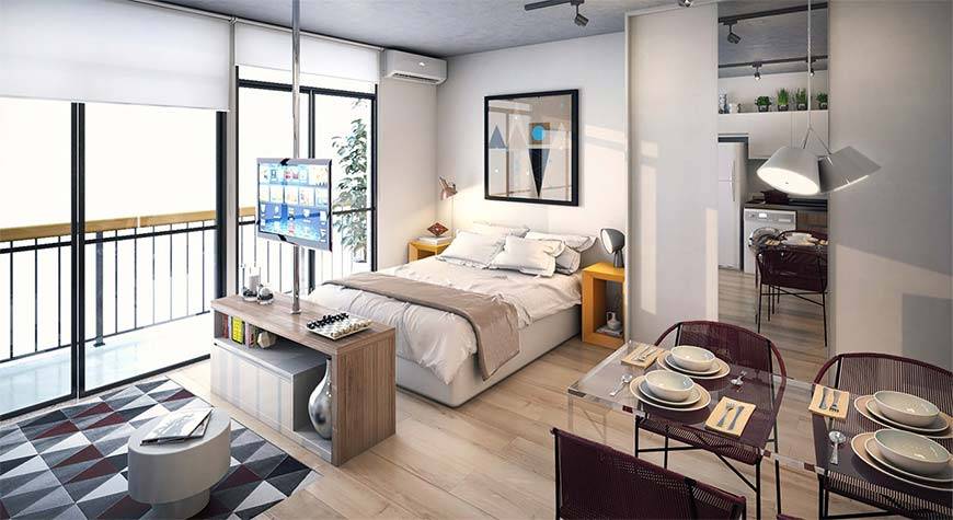 Обстановка однокомнатной квартиры в лаконичном дизайне