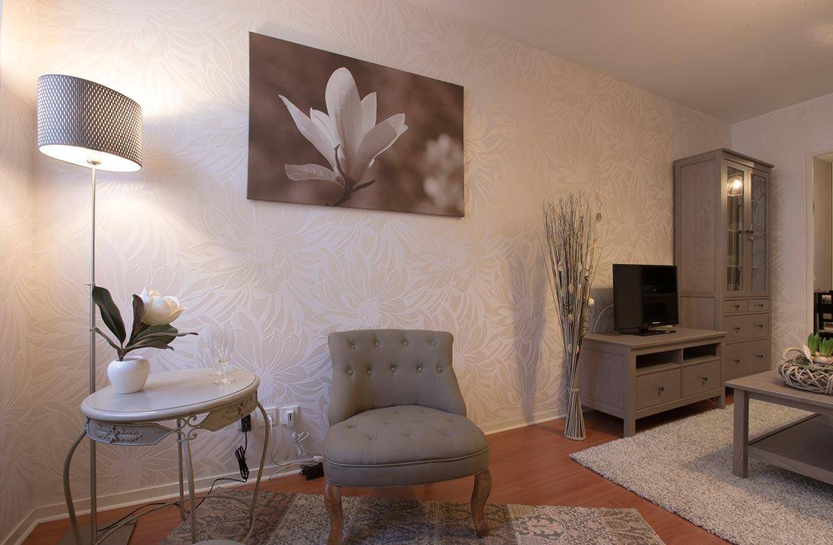 - Разных отделочных материалов. Не стоит делать резких переходов на стенах. Зону гостиной можно оклеить светлыми обоями, а в прихожей выбрать обои с неброским рисунком.