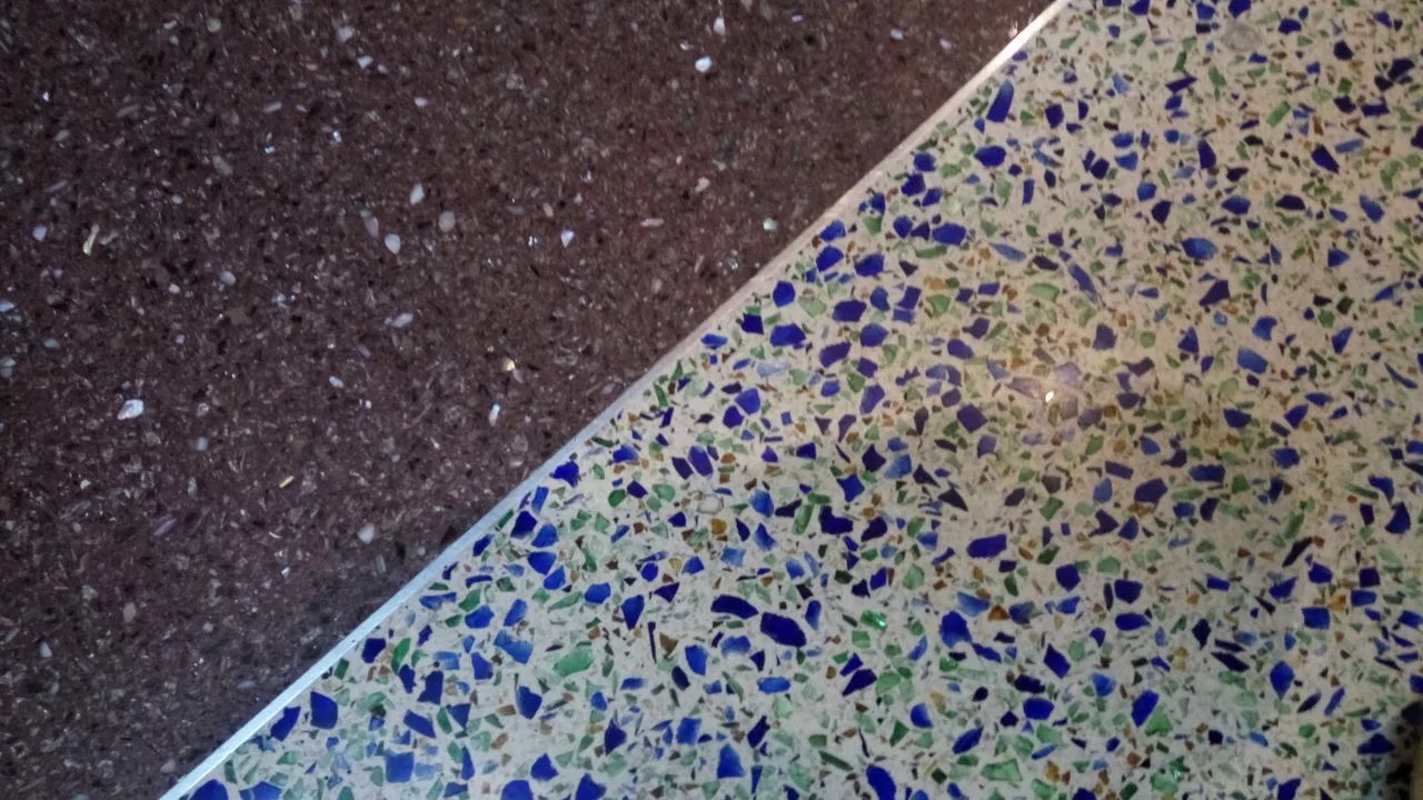 разнятся по типовым решениям. Это могут цвета аналогичные мрамору, единый цвет с разной фракцией и насыщенностью флоками по решению дизайнера, сочетание нескольких цветов (радуга). Выделяя разнообразие решений по устройству, цена за м2 декоративного полимерного пола