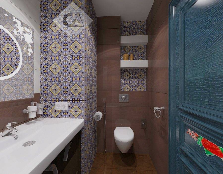 Кстати, в пользу этого варианта говорит и практичность. На плитке с ярким рисунком следы от воды будут практически не заметны, в отличие от гладкой матовой или глянцевой плитки.