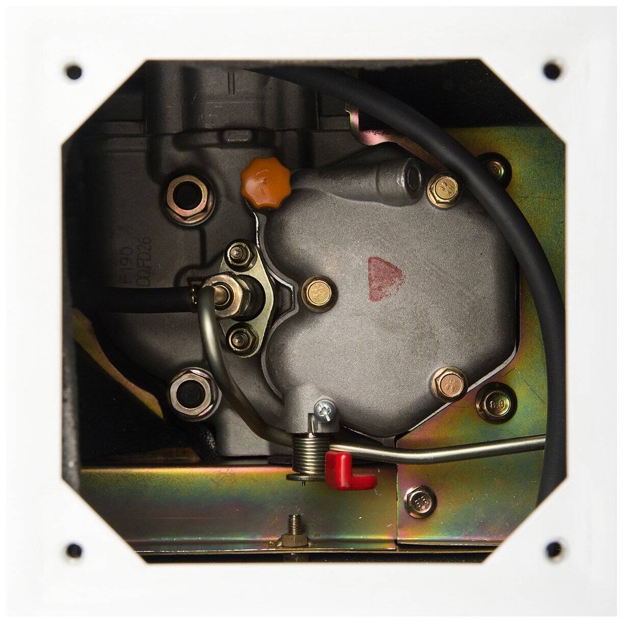 Полностью открытый корпус. Бак для топлива небольшой, стоит сразу устанавливать дополнительную емкость. Работать без остановки при хорошей вентиляции может достаточно долго.