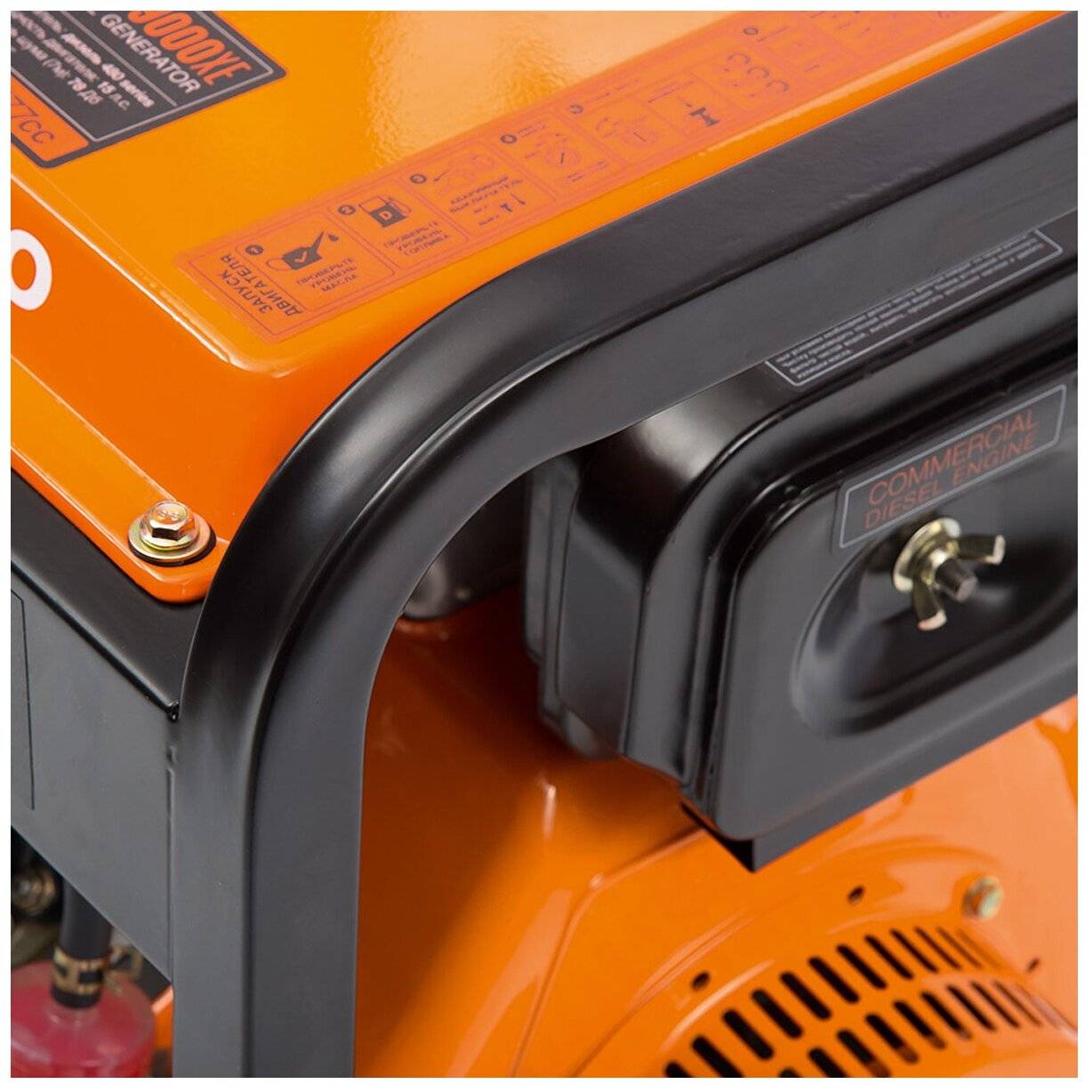 Это надежный однофазный аппарат номинальной мощностью 500 Вт с дизельным двигателем воздушного охлаждения, который оснащен электростартером, который обеспечивает легкий и быстрый запуск.