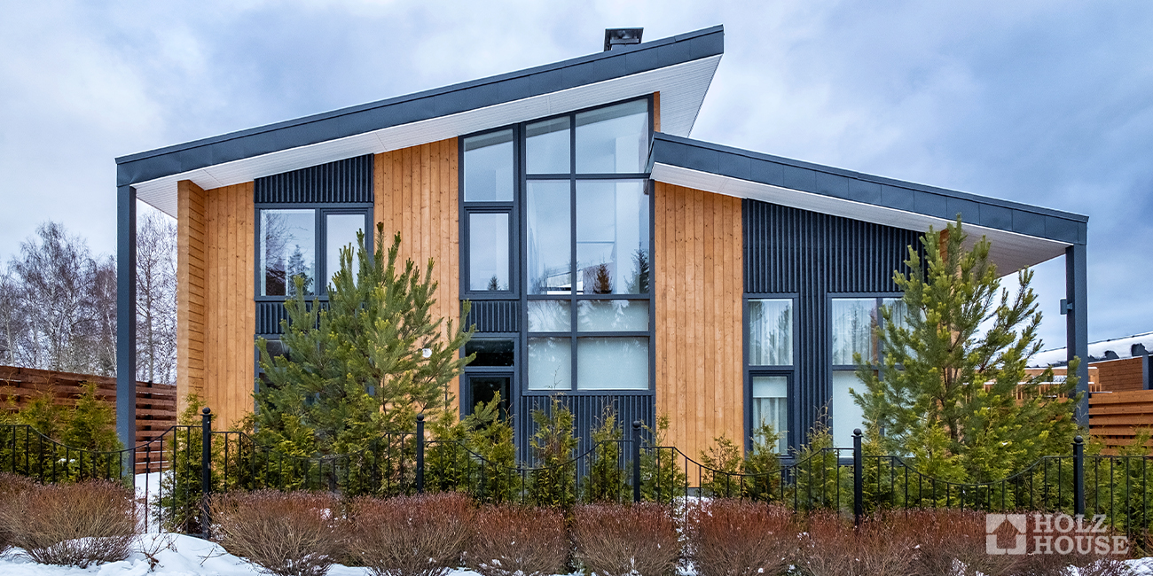 Дома из бруса могут быть построены в современном стиле