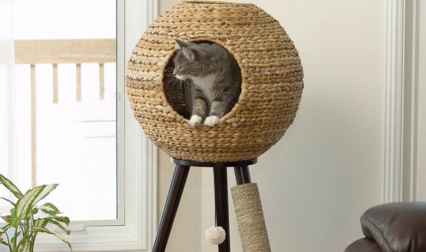 Итак, чтобы мурка не облюбовала для сна какое-нибудь неподходящее место, нужно позаботиться о создании ее собственного уголка, при этом желательно учитывать индивидуальные особенности кошки. Так, одни животные предпочитают забираться как можно выше, а другие, наоборот, стараются залезть под шкаф или ванну. Любовь к высоким предметам объясняется инстинктами: когда хищница может взирать на своих собратьев сверху вниз, то она чувствует себя в более выигрышной позиции, да и температура воздуха на возвышении обычно выше, так как теплый воздух поднимается вверх. Любителям занять позицию наверху идеально подойдет домик на столбе.