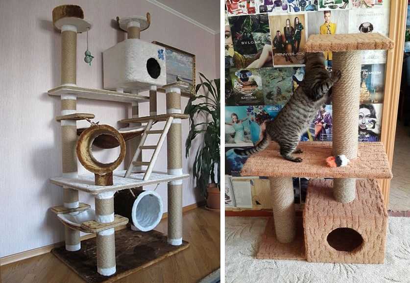 И еще: если кошачий комплекс получился слишком высоким, его лучше зафиксировать. К полу или к стене, или и к полу, и к стене. Иначе могут быть проблемы — бывали случаи, когда коты обрушивали конструкцию.