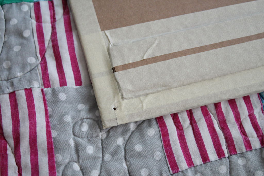 На задней стороне прочно стяните ткань и как следует закрепите ее.