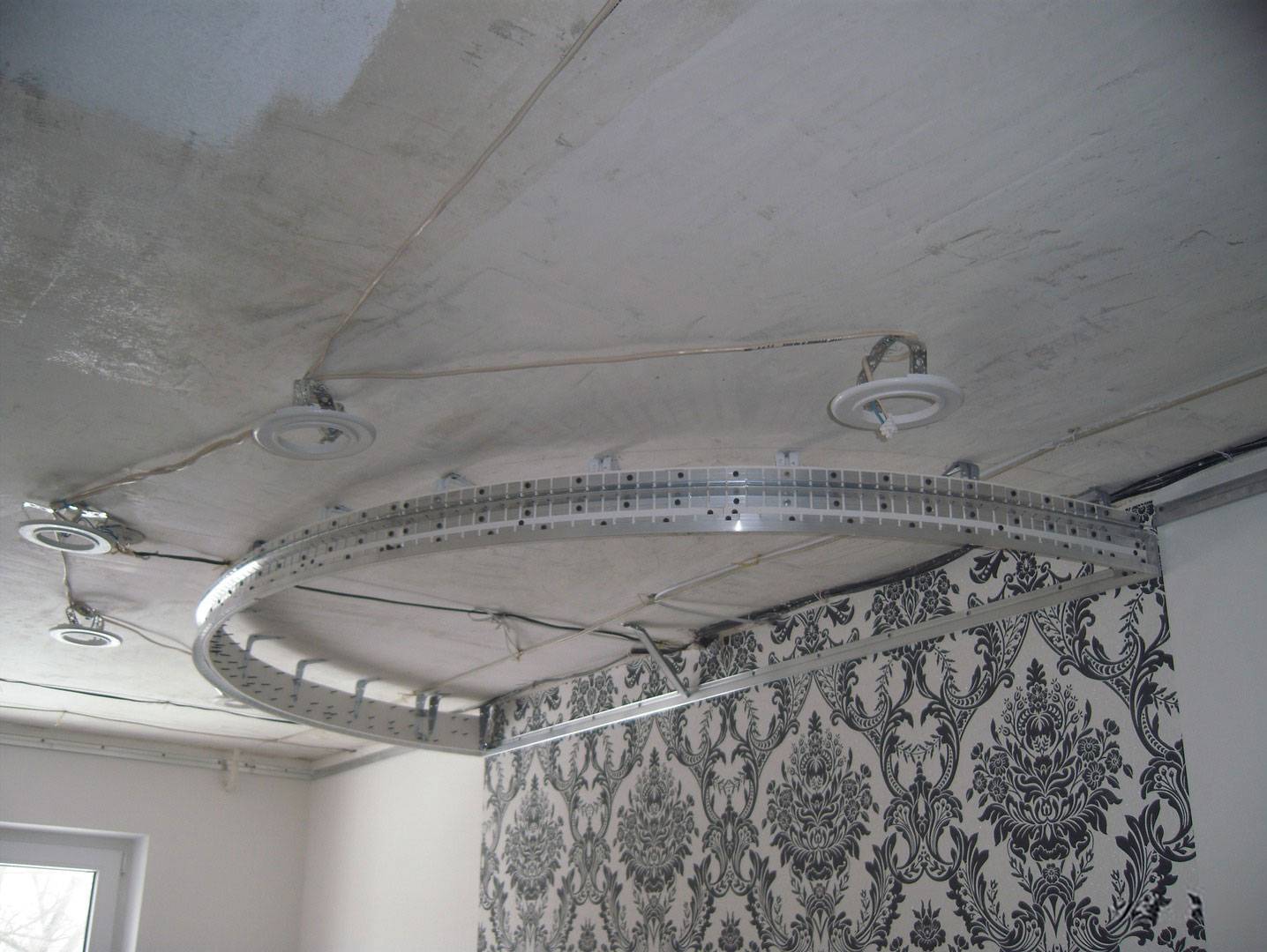 Готовый чертеж натяжного потолка в два уровня с бумаги переносят на основание. Для нанесения изогнутых линий лучше всего применить пластиковый профиль. Эту деталь конструкции можно спокойно изгибать, без ущерба для плавных переходов. Завершив процесс создания чертежа для выставления уровней, нужно определиться с высотой расположения нижнего уровня натяжного потолка. Оптимальный показатель – не менее 15 см.