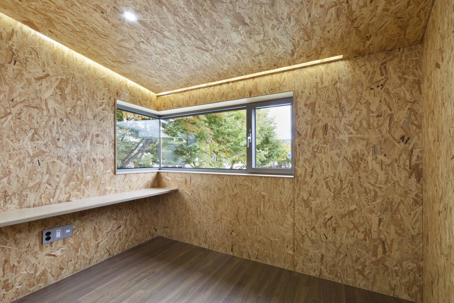 Проект готовой отделки комнаты из OSBФанера впитывает влагу быстрее, чем OSB, но следовательно, она также высыхает быстрее. Оба продукта будут набухать при намокании, но при высыхании фанера вернется к почти точной форме. OSB менее склонна к тому, чтобы быть оставленной под дождем, и будет демонстрировать больше деформаций после смачивания и сушки.