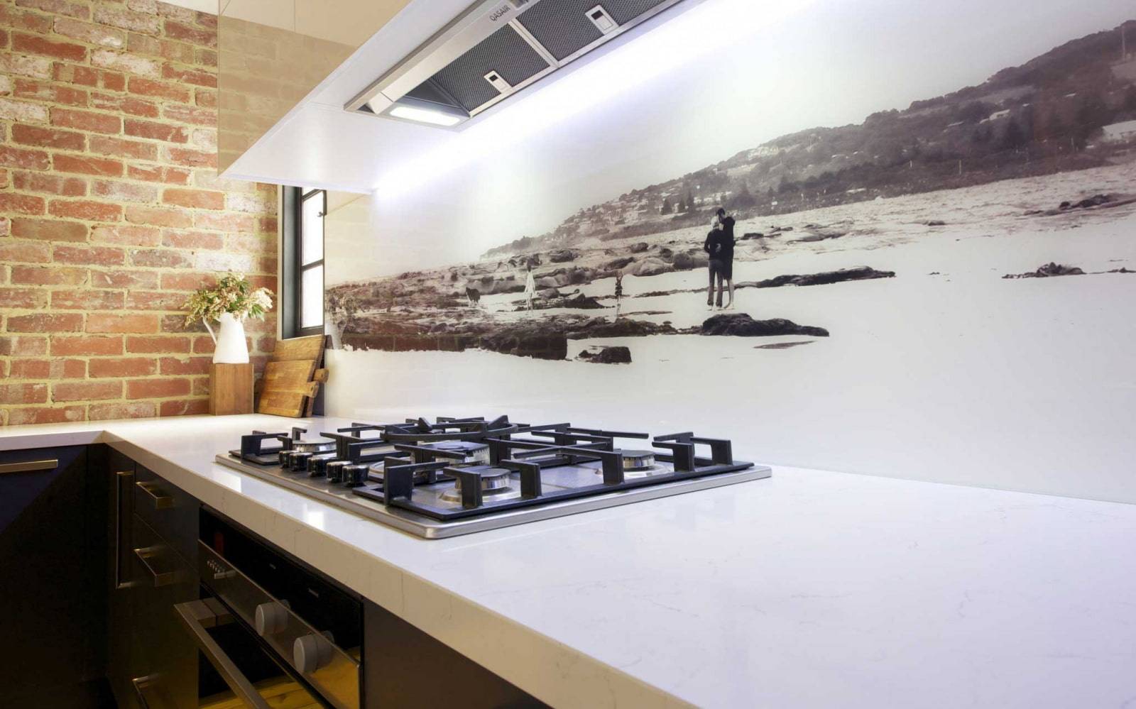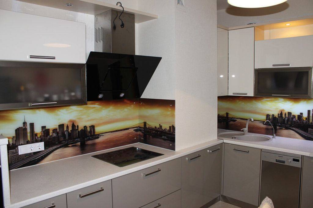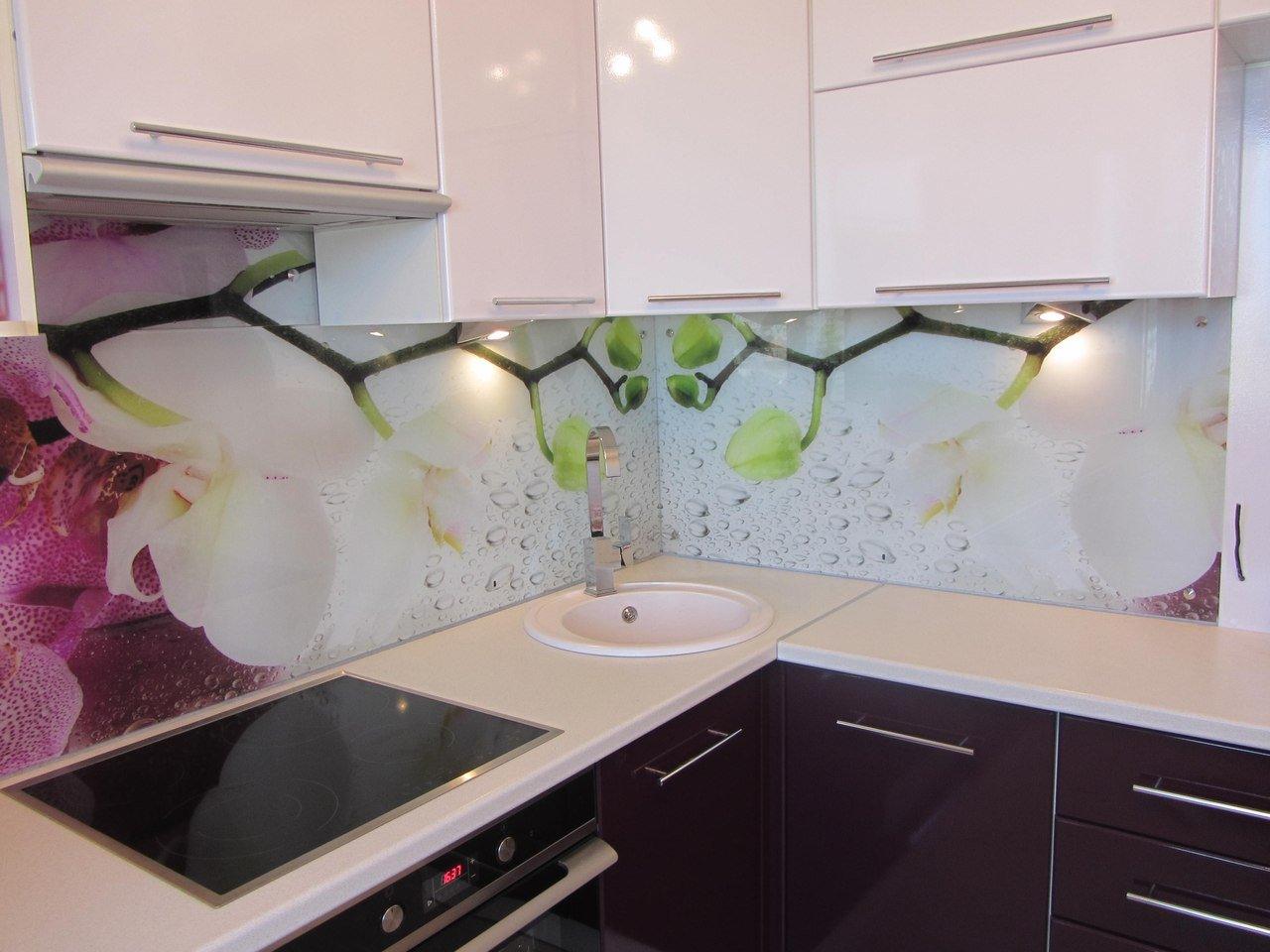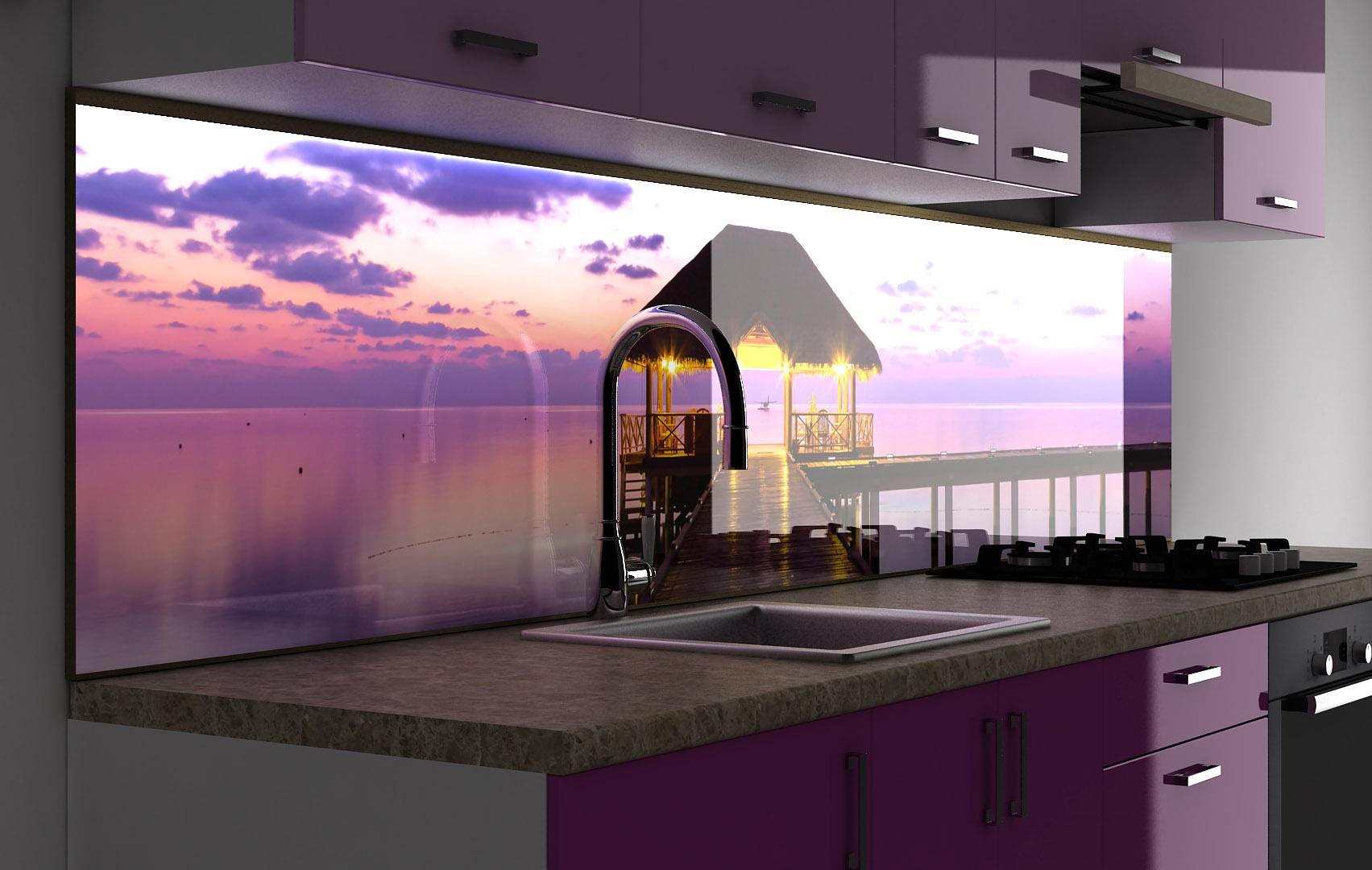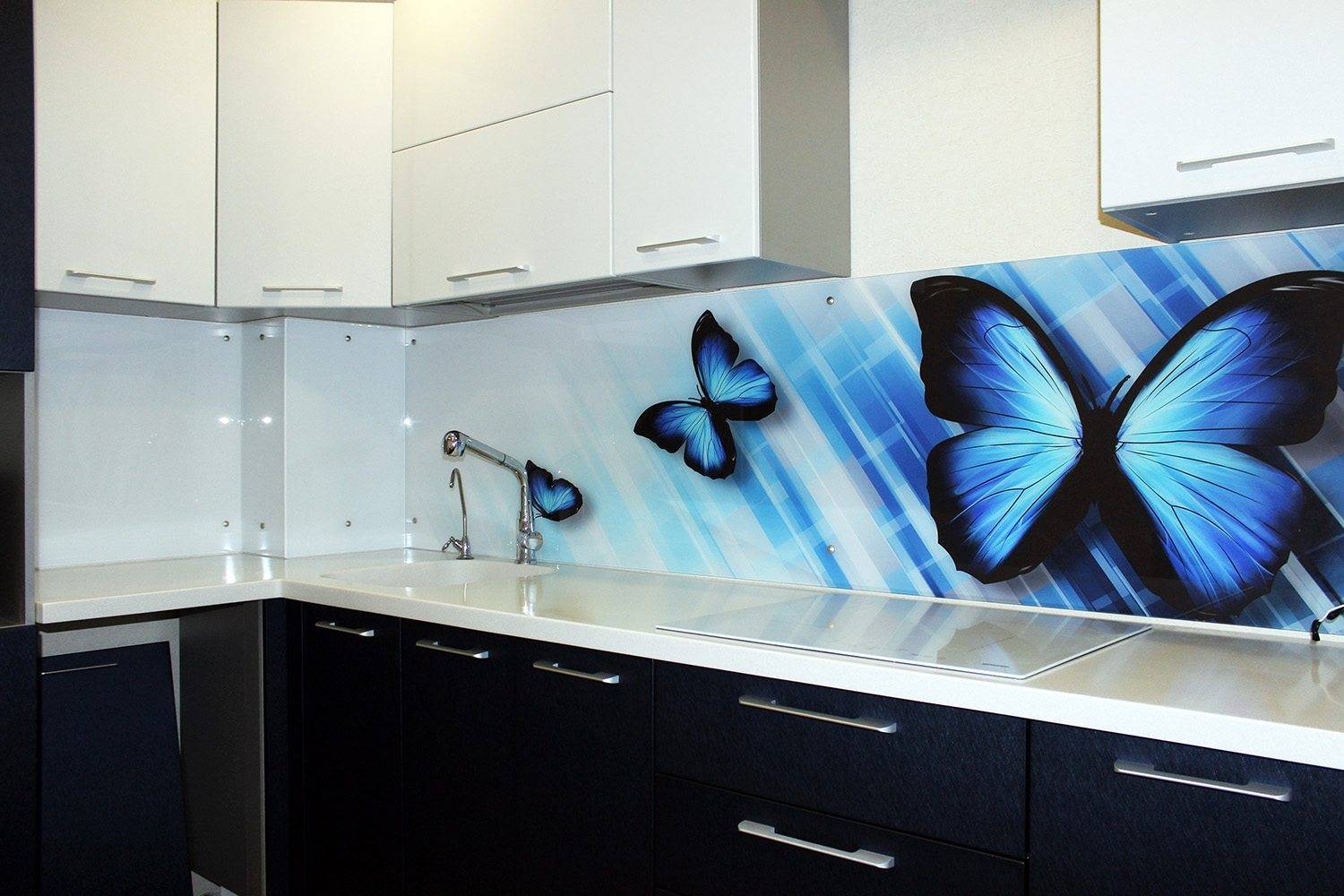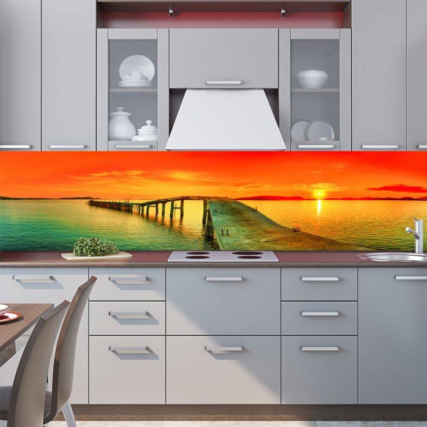 - Фартуки узор – это уникальная возможность для пользовательских причине передник. Существуют две основные технологии печати: полный цвет УФ-печати и виниловой пленки с рисунком. Первый вариант намного прочнее и долговечнее, кроме того, этот способ позволяет разместить на стекле 3D рисунки. Второй способ более бюджетный, но наклеенная на стекло пленка со временем отслаивается и выгорает.