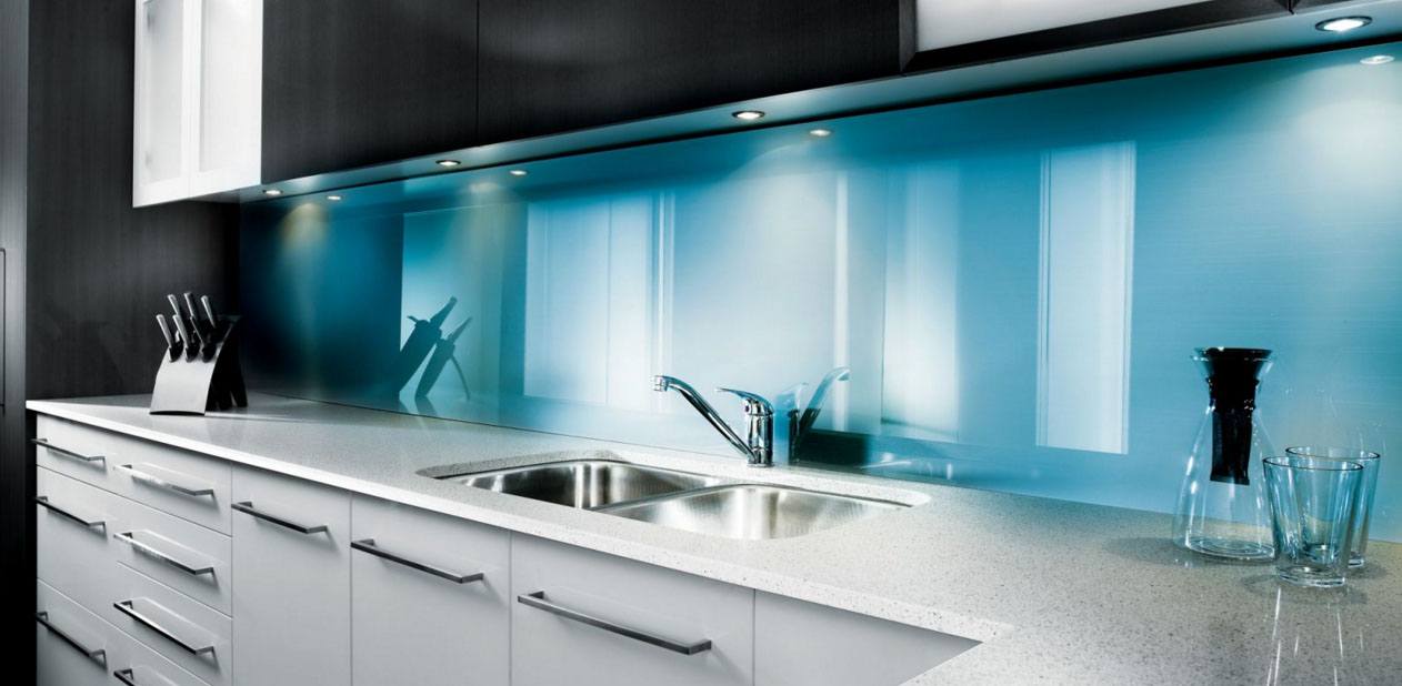 важно понимать, что обычное стекло не подходит для кухни в качестве отделки стены рабочей зоны, использовать только закаленное стекло, которое не только намного прочнее, но и безопаснее: при разбивании оно разлетается на мелкие кусочки без острых сколов