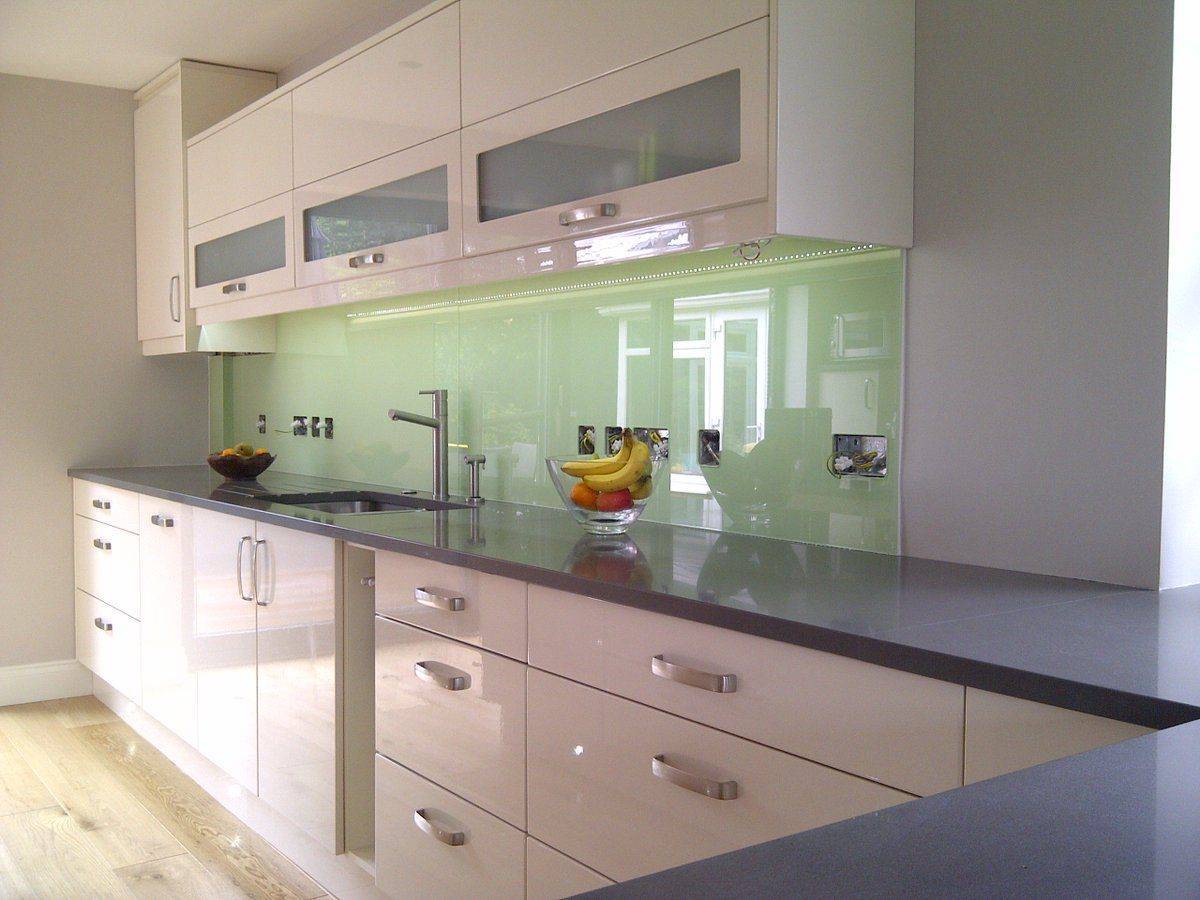 Цветное полотно из глянцевого стекла освежает интерьер кухни
