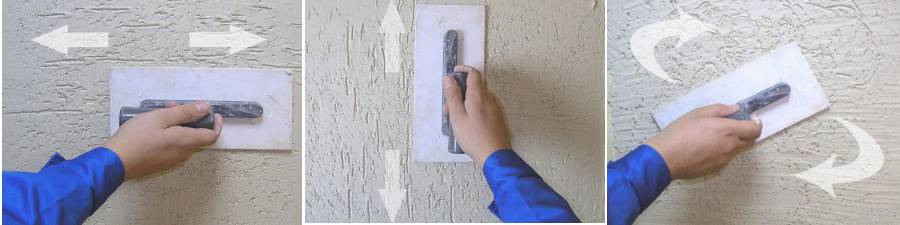 Фактуры создаются либо за счёт техники, либо за счёт техники и структуры штукатурного раствора одновременно.