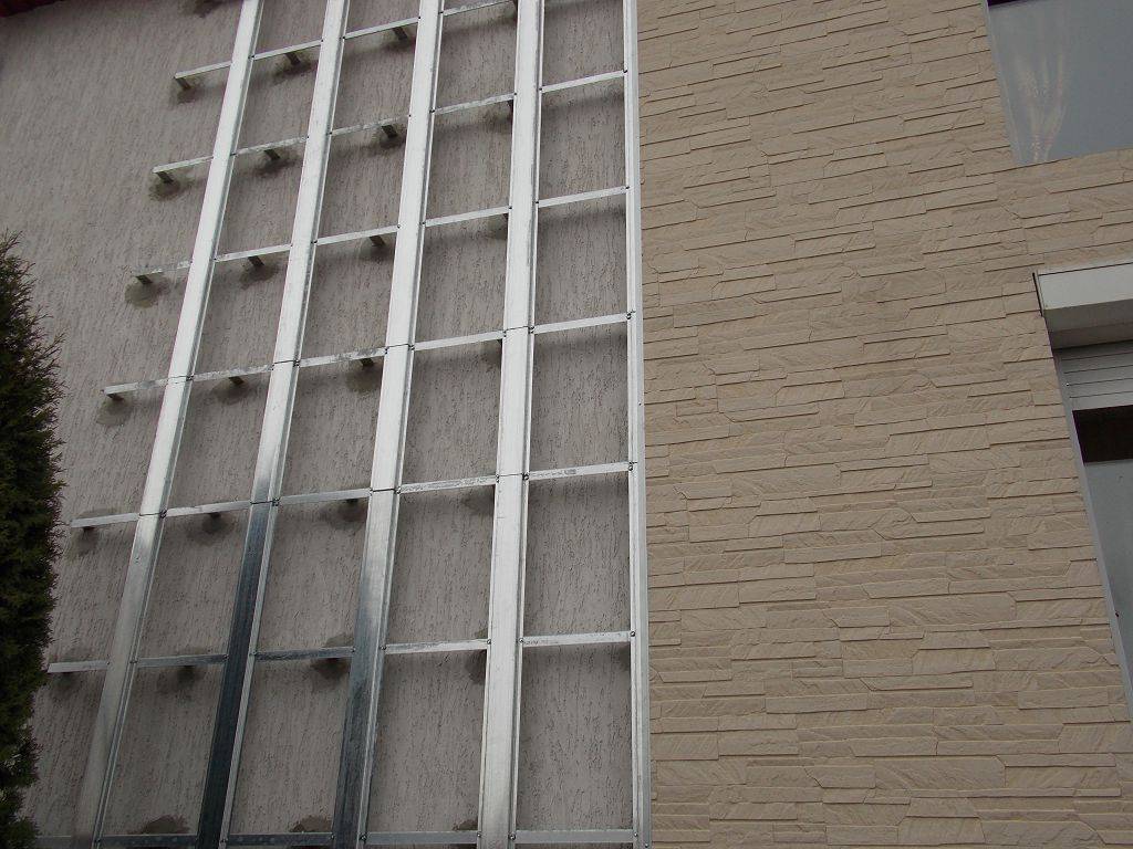 Фасадные панели обычно имеют специальные замки, поэтому покупать клей или раствор не понадобится. Подготовка стен для облицовки подразумевает создание каркаса и прокладывание утеплителя.