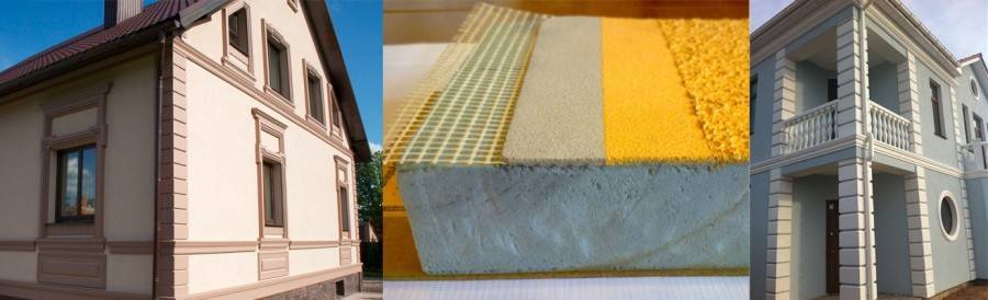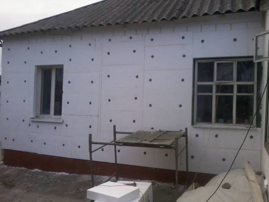 На стены фасады, которые должны быть заранее загрунтованы, наклеиваются дополнительно панели утеплителя ( обычно это пенопласт наиболее огнеустойчивых брендов).